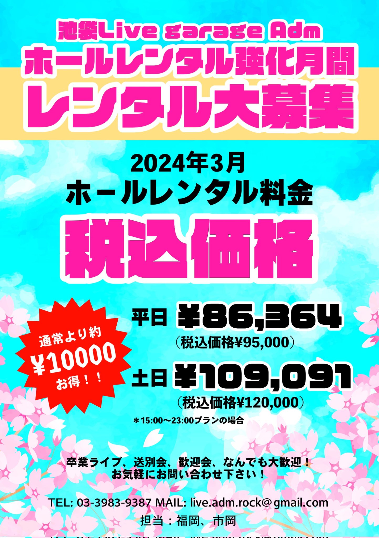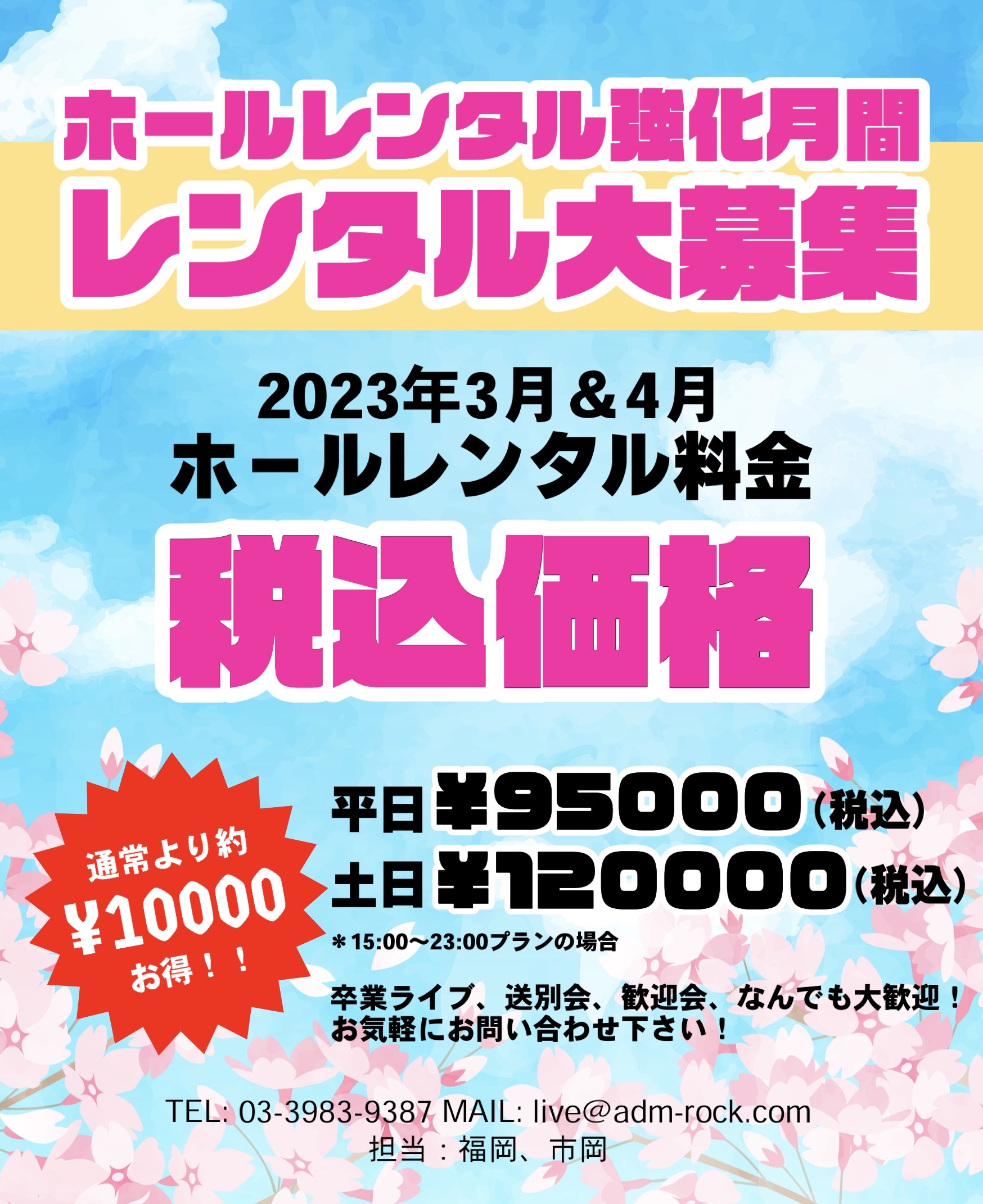 TEL : 03-3983-9387 メール:live.adm.rock@gmail.com 担当:福岡/市岡