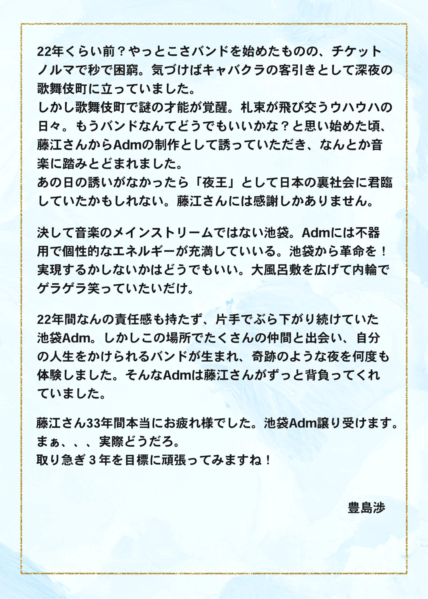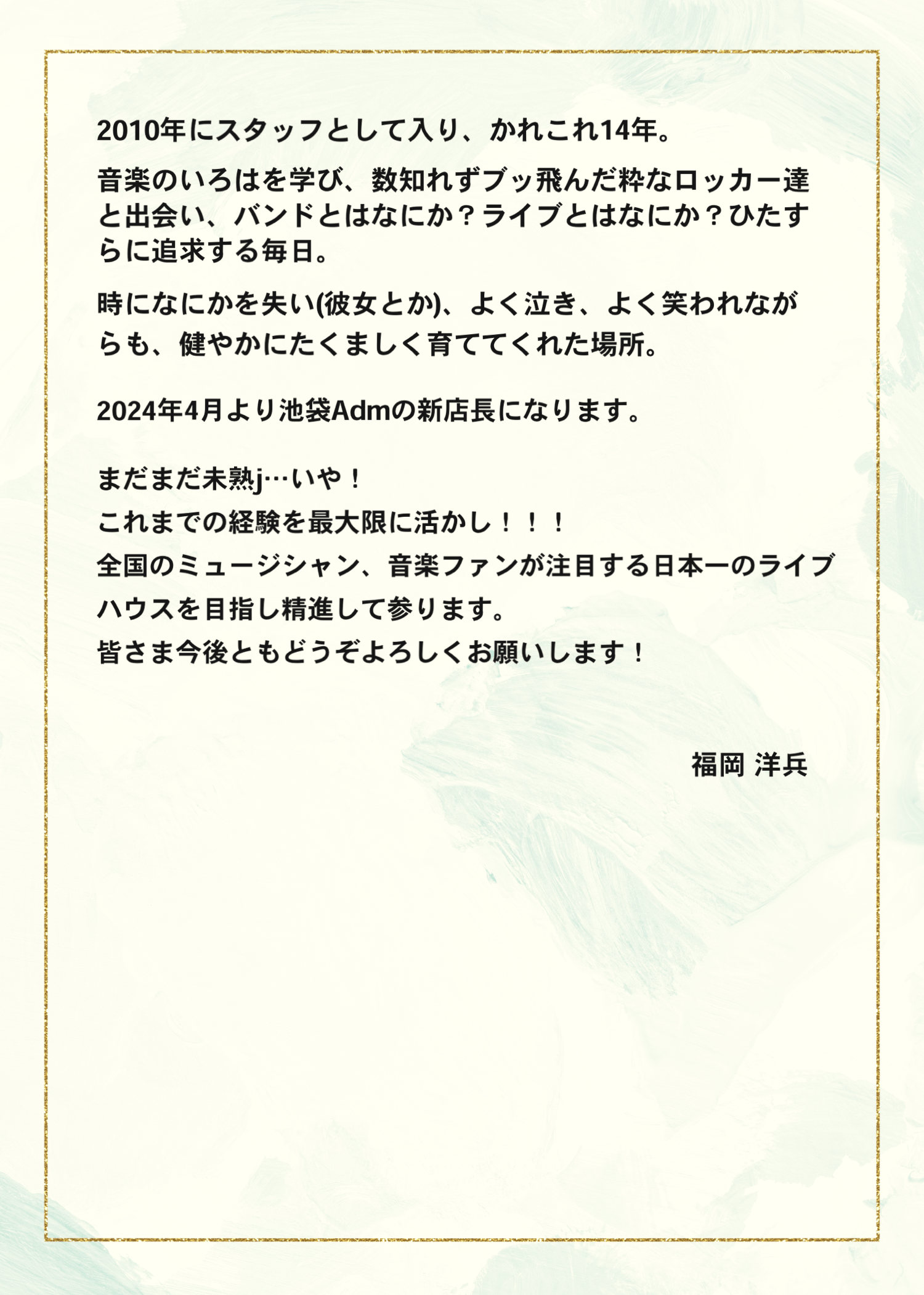 2024年4月1日よりオーナーが藤江博から現店長 豊島渉に代わります。